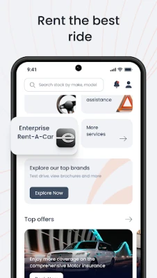 - Book a rental vehicle through Enterprise Rent-A-Car directly in the app