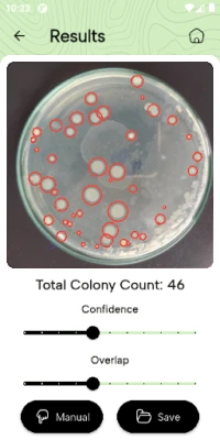 The colony counter app is still in the testing phase and may not be reliable. Some colonies may not be identified due to technical limitations. Any feedback would be appreciated.