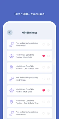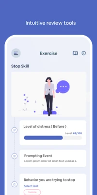 Complete exercises and practice ideas that are similar to worksheets in actual DBT skills training. There are over 100 exercises. You can also see a history of all the exercises that you did in the past to compare. Each of the exercise link directly to lessons.