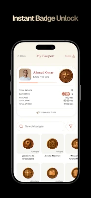 Track your journey through Abu Dhabi with a personalized digital passport displaying all your badges, points earned, achievement tiers, and visit statistics.