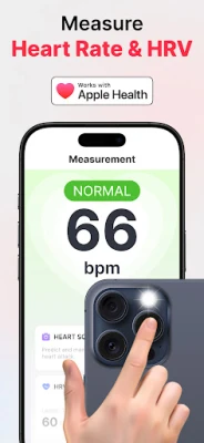 Measure your heart rate and HRV anytime, anywhere. Just place your fingertip over your camera — no extra devices needed.