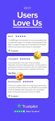 Unlike other survey apps with frequent "screen-outs", MSR ensures you get fair and consistent rewards. Expect more rewards for your time, with a smooth and enjoyable experience to boot.