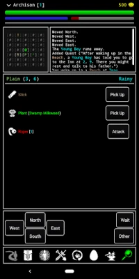 A solo indie-dev aims to bring an old-school style to modern day Android devices. This is accomplished with an easy to understand interface, a few iconic buttons, and several information screens. Players are empowered to navigate a proceedurally generated world full of danger and treasure.
